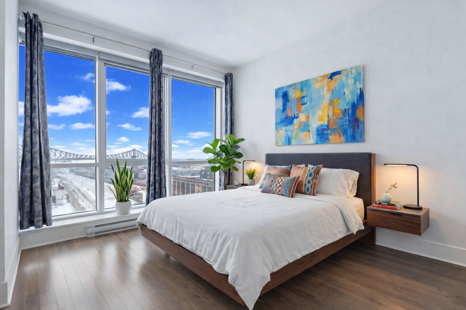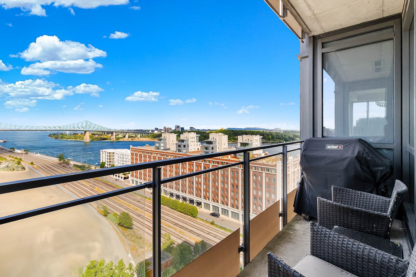 Welcome to Solano Phase 7, a rare waterfront experience in Old Montreal. Ideally located directly across from the Clock Tower, this residence offers peace, quiet, and breathtaking water and city views. Enjoy resort-style amenities including an outdoor pool and hot tub, indoor pool with hot tub, sauna, steam room, endless exercise pool, and a two-level gym. Relax or entertain on your balcony with BBQ while overlooking the river and fireworks--the best view in the city. Easy access to highways, set apart in a tranquil corner away from the bustle yet steps to all the charm of Old Montreal.
