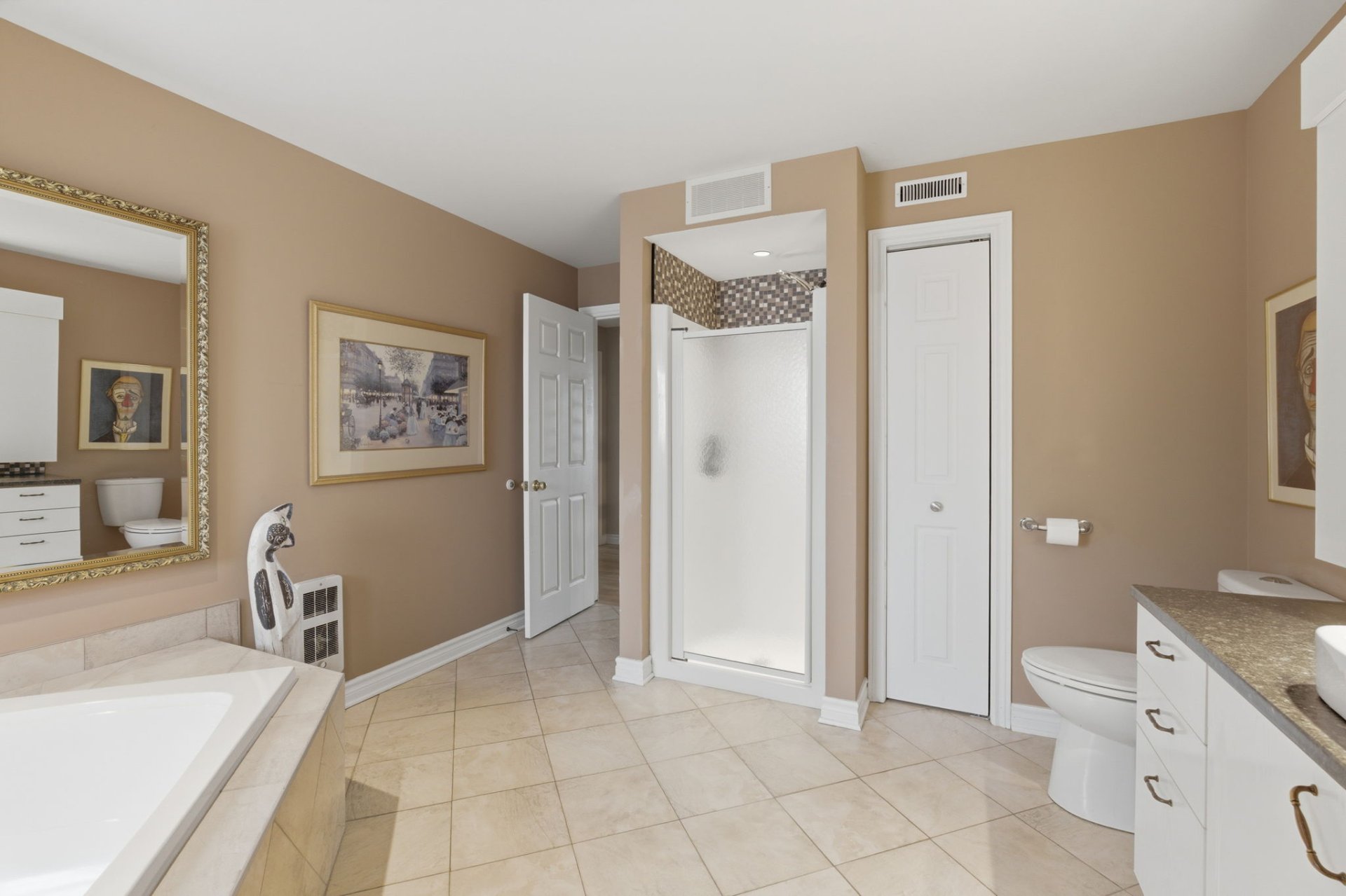 wall, large walk-in closet, and ensuite bathroom