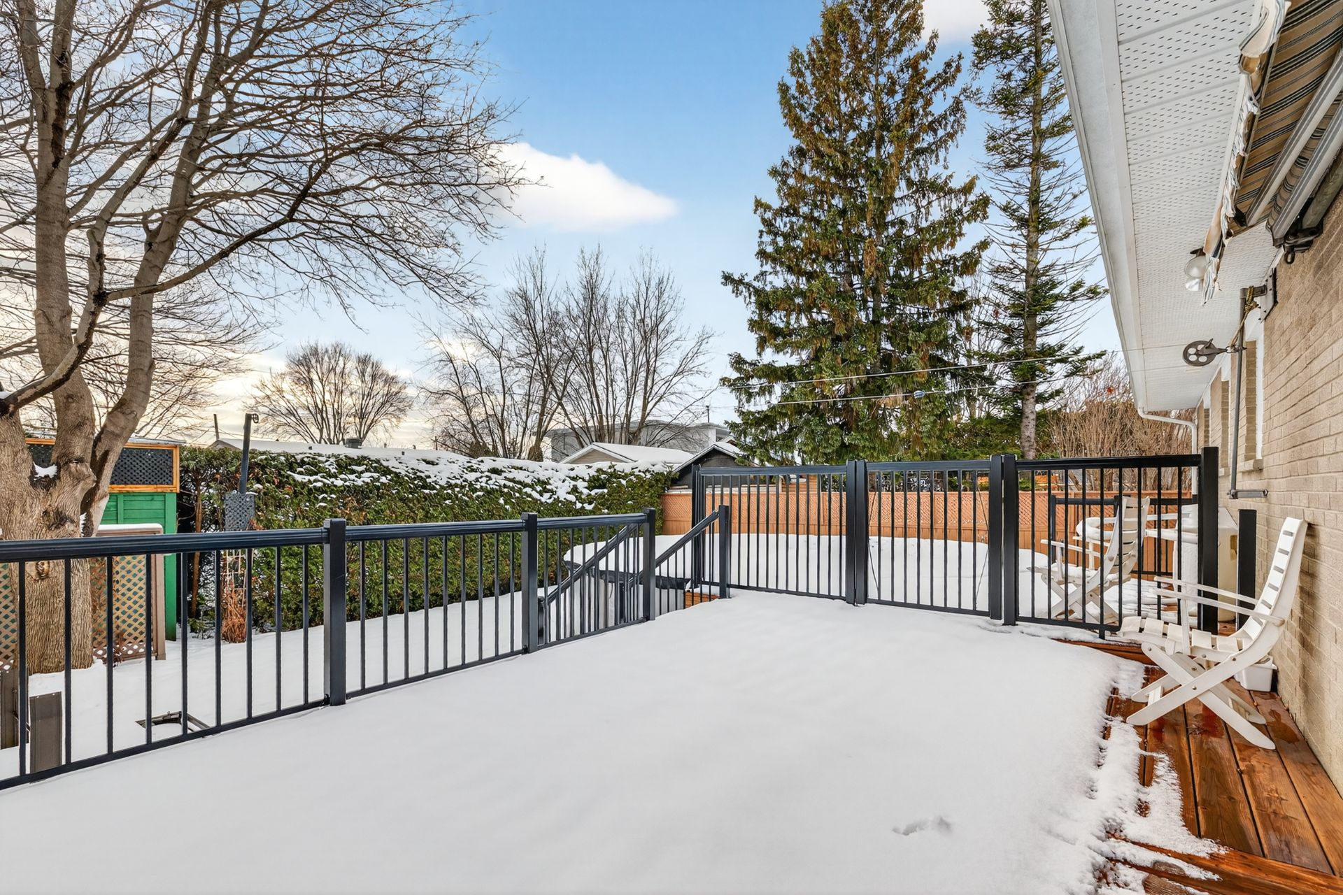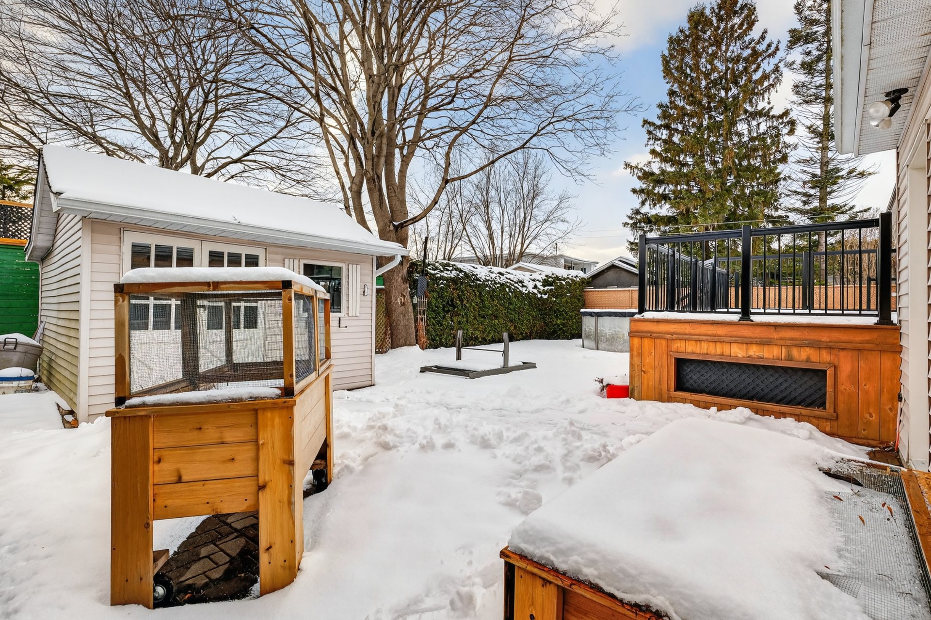 | Landscaping | Fenced, Land / Yard lined with hedges |